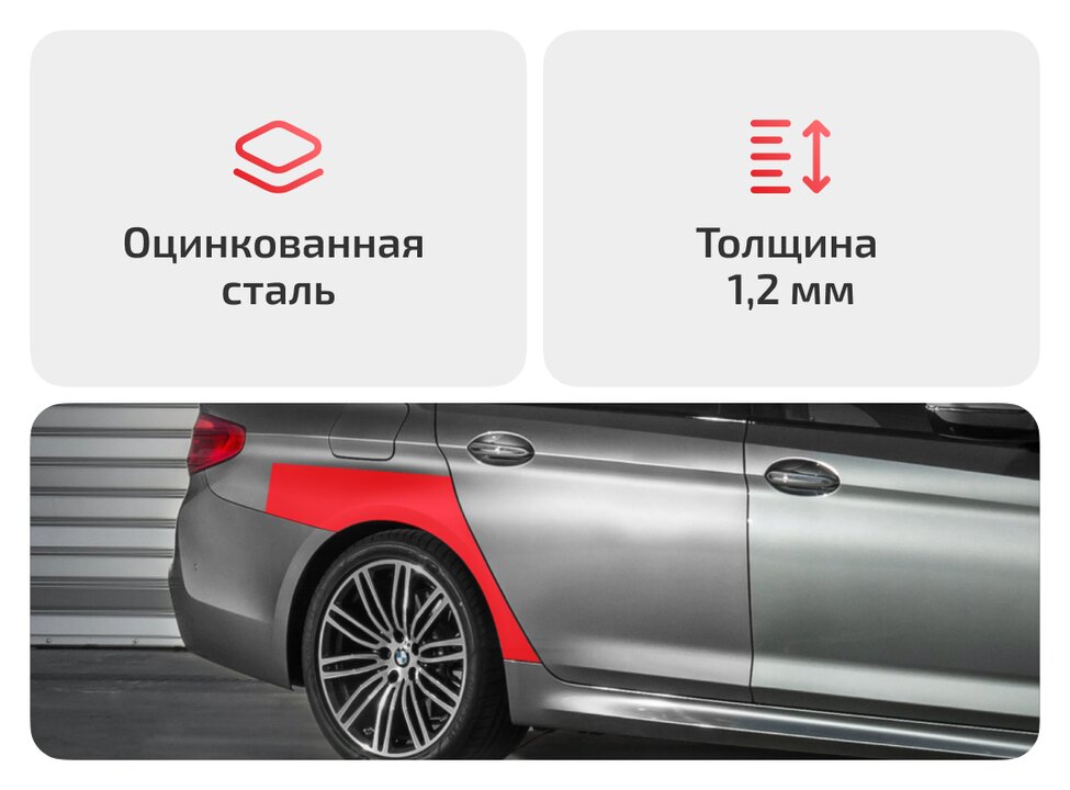 Ремкомплекты задних арок выполнены из высококачественной оцинкованной стали толщиной 1,0-1,2 мм, что гарантирует срок службы до 10 лет.